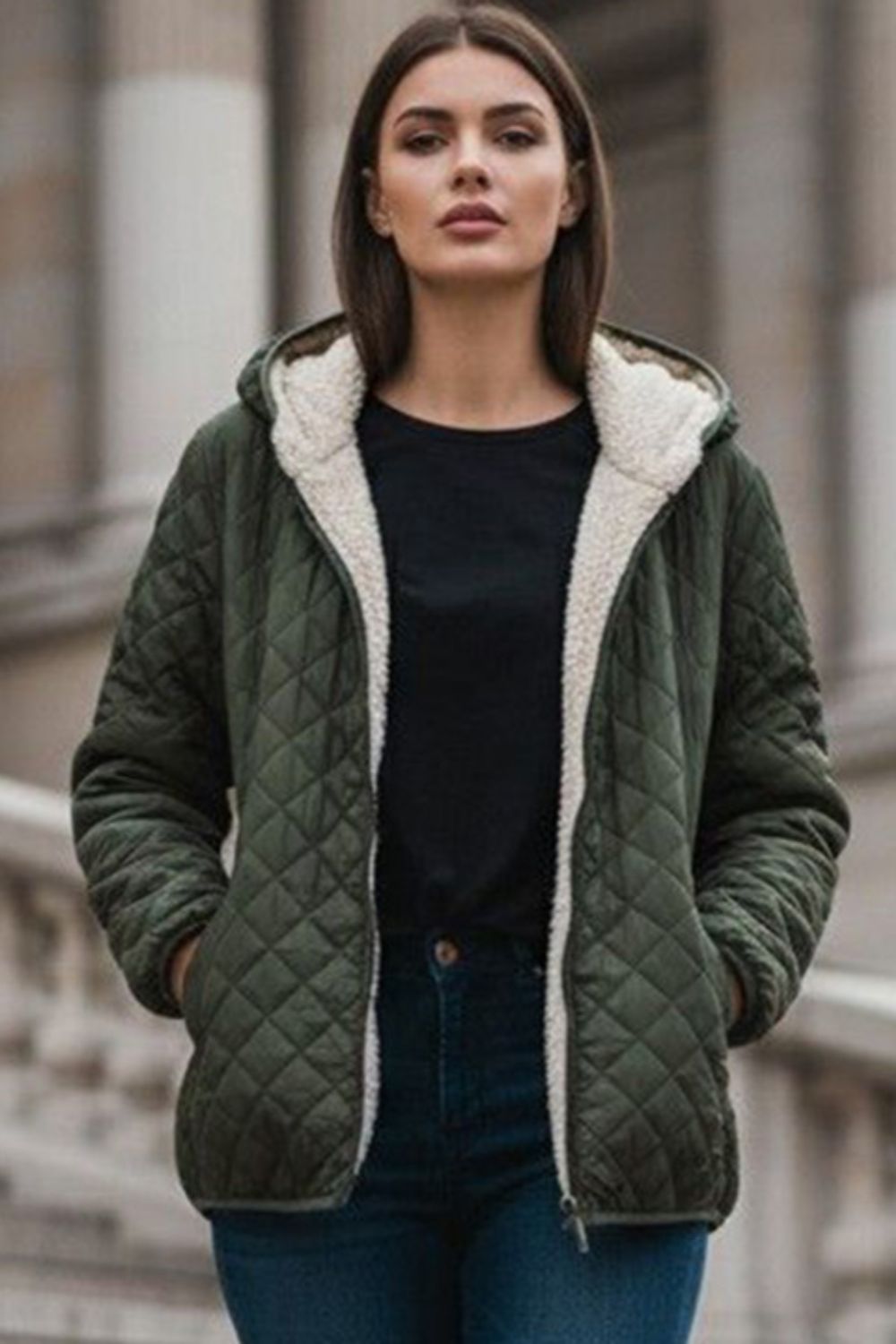 Veste matelassée à capuche avec doublure en peluche