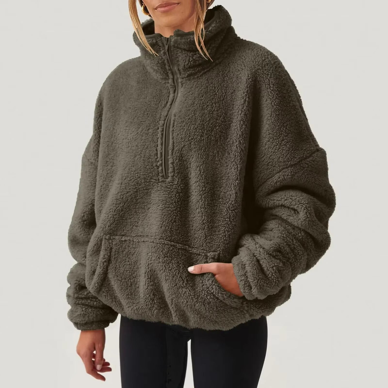 Pull polaire doux à demi-fermeture éclair pour femmes